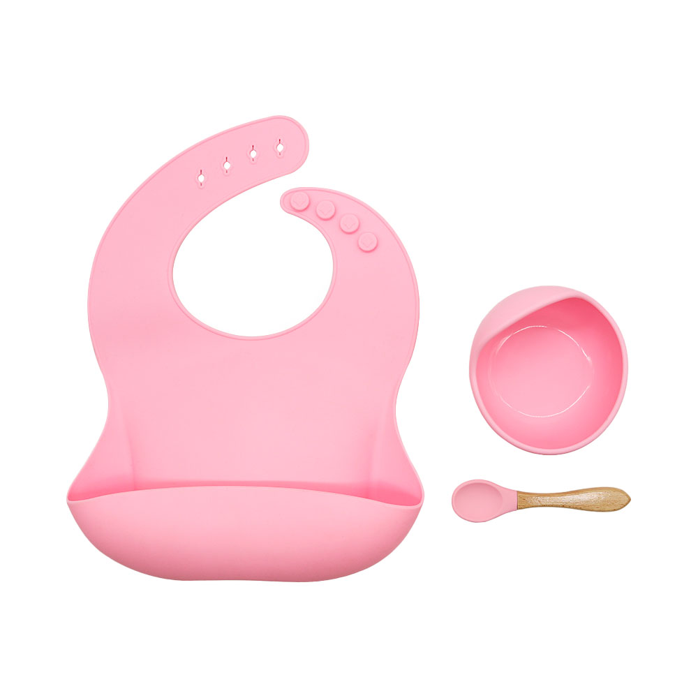 Set de Babero con bolsillo + Bowl de silicona – Rosado