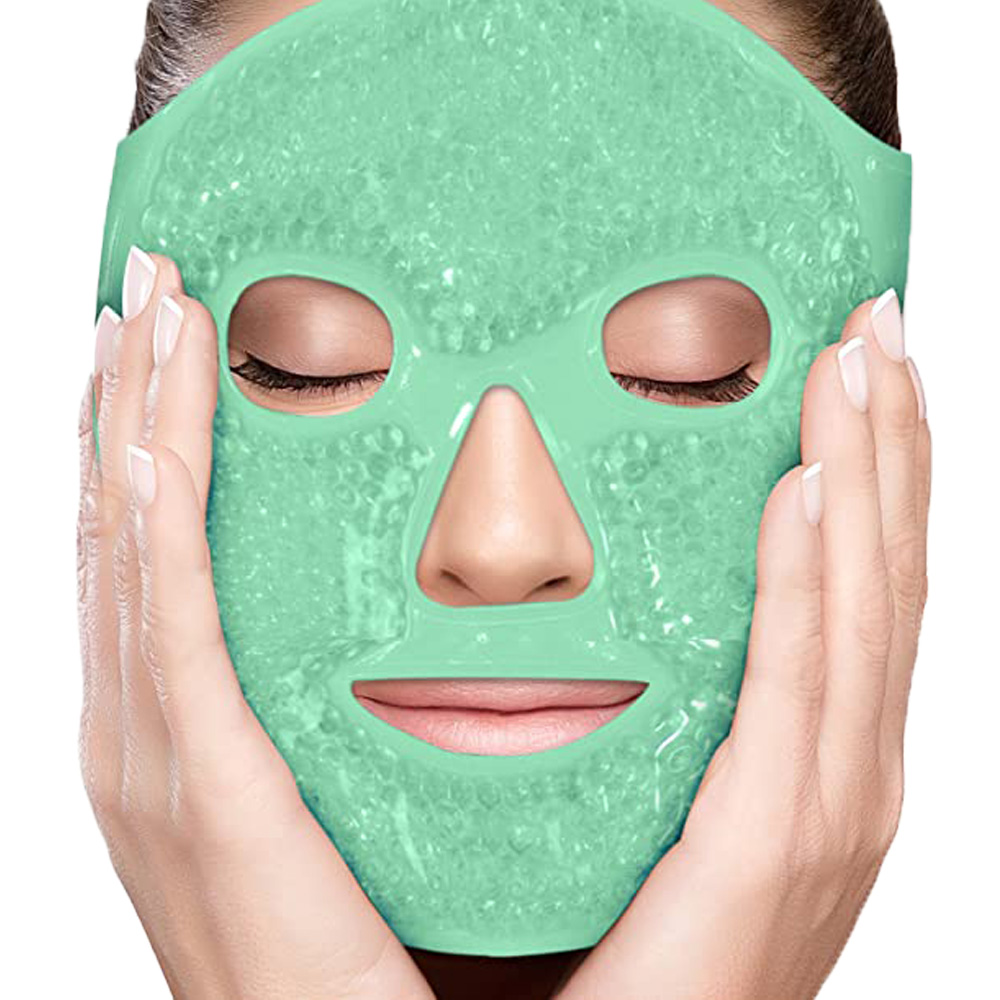 - Relleno de gel moldeable y cuentas, la máscara facial de gel se dirige a la inflamación y la hinchazón. Incluso se puede utilizar para ayudar a aliviar las molestias después de la cirugía de extracción de las muelas del juicio o cirugía plástica.