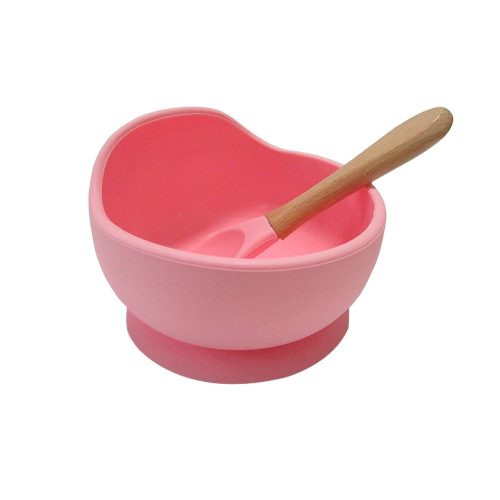 Set de Babero con bolsillo + Bowl de silicona – Palo rosa